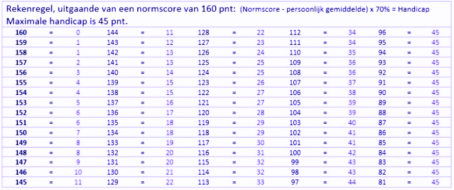 De handicap wordt elke keer vastgesteld per speler, maar telt alleen mee voor de score van het team, niet voor de persoonlijke score!